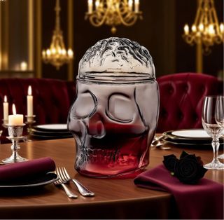 Originale decanter per vino a forma di teschio con coperchio a forma di cervello. Perfetto per aggiungere un tocco unico alle tue serate. - Design a forma di teschio - Coperchio a forma di cervello - Ideale per vino o altre bevande. Nuovo mai usato ancora nello scatolo