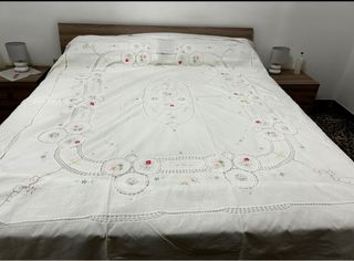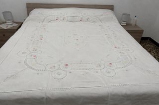 Copriletto lino ricamato a mano