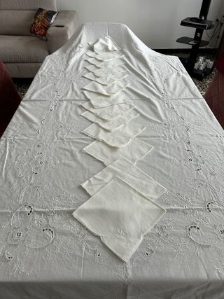 Tovaglia ricamata con 12 tovaglioli floreale