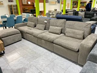 Splendido divano lineare a 4 posti con pouf abbinato. Puoi spostare il pouf ovunque o usarlo come tavolino. Tessuto grigio molto resistente e confortevole. 📞Chiama o scrivi al 622*146*978 - 🏠 Lo consegniamo a casa tua - 📦 Arriva nella sua confezione originale - 📍 Effettuiamo spedizioni e montaggio - ✔️Garanzia del produttore - 💵 Opzione di pagamento alla consegna, SENZA RISCHI