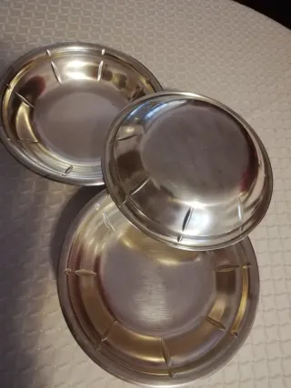 Elegante set di tre ciotole silver plated Krupp Milano, design raffinato. Diametro: circa 21 cm In ottime condizioni! Sotto presentano qualche segno del tempo ma sopra sono bellissimi!