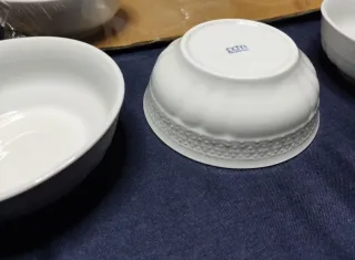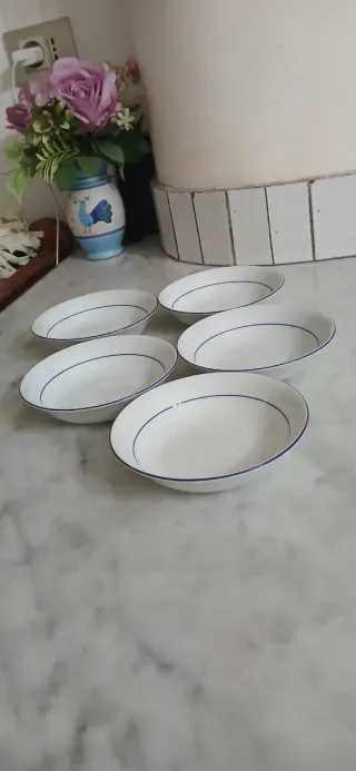 Vendo 5 ciotoline , marca Thun In porcellana bianca con bordo blu Ottime condizioni Diametro cm.13,5