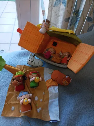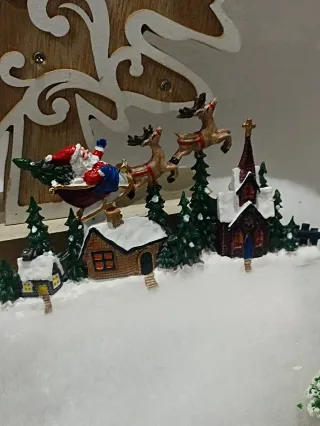 Set di figure decorative. - Figura di un sole con volto e presepe - Miniatura di una casa a due piani con dettagli. Questo articolo è stato donato all'Associazione Protezione Animali SOS Bilbao per la vendita di beneficenza. I fondi raccolti contribuiscono a coprire le spese per la cura degli animali salvati da questa Associazione.