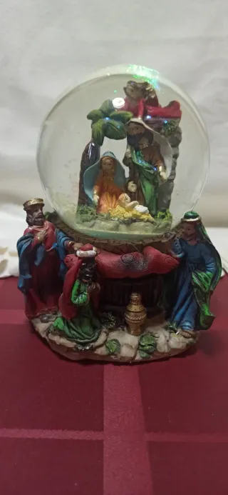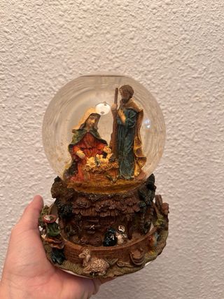 Pallina di neve con scena del Presepe di Gesù con musica e brillantina. Figure dettagliate del Presepe. Base decorata con motivi natalizi.