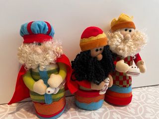 Set di figure per presepe natalizio, perfette per decorare la tua casa durante le festività. Figure in tessuto con dettagli. Presentate in una scatola di plastica.