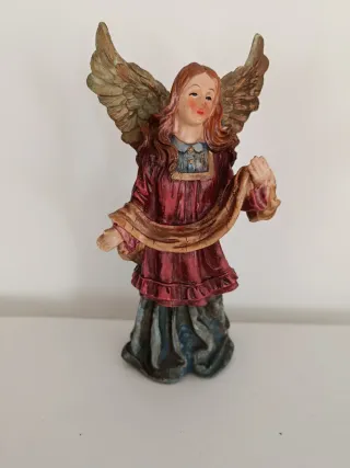Statuina decorativa dell'angelo, ideale per il tuo presepe natalizio. Un pezzo con un design curato e dettagli dipinti a mano. Vestiti in toni di rosso e blu. Ali dettagliate.