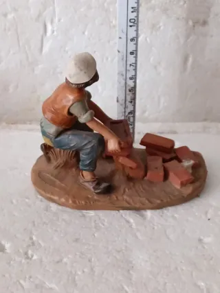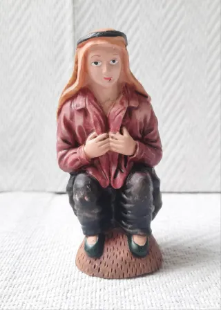 Statuina di contadino/a codardo, caganet tradizionale e popolare nei presepi natalizi. Altezza circa 8 cm. Plastica dura per Natale. Scena di natività. Pastori.