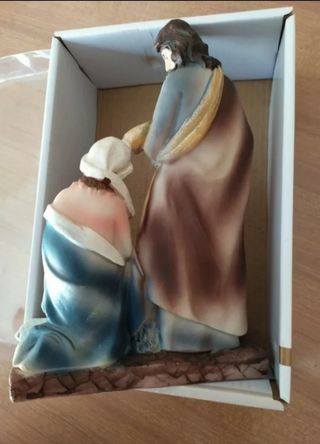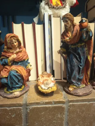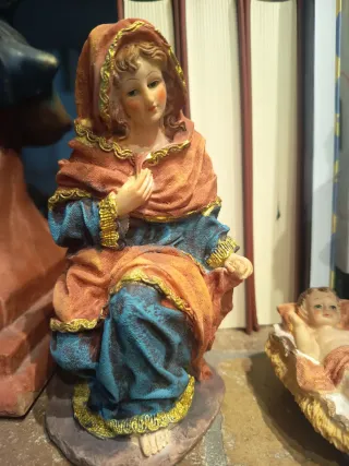 Figura del presepe alta 20 cm. Rappresenta la scena della Natività. Include Maria, Giuseppe, il bambino Gesù e i Re Magi. Artigianato dettagliato.