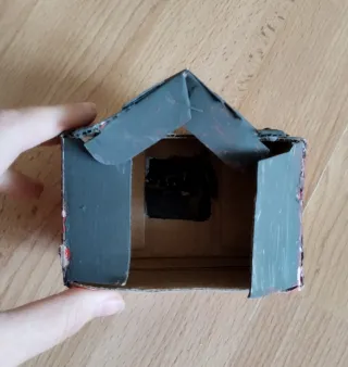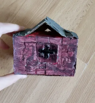 Piccolo presepe fatto a mano, ideale per decorare a Natale. Con costruzione artigianale in cartone. Tonalità marroni e grigie.