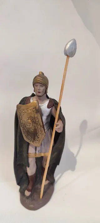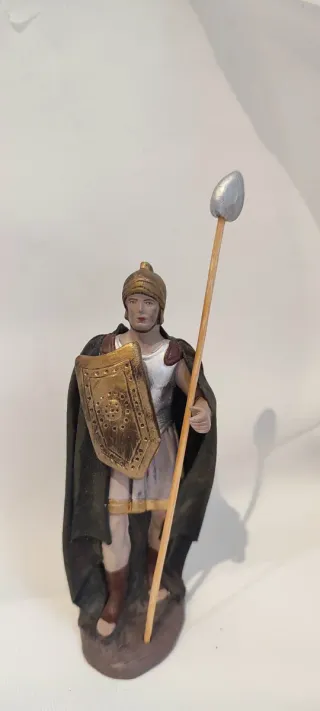 Figura artigianale di soldato romano realizzata dal rinomato artista di Murcia Jesús Griñán. In argilla e stoffa incollata. Misura 14 cm senza contare la lancia. Non negoziabile, solo pagamento in contanti. Dettagli dorati su scudo e cintura. Include lancia. Consegna vicino alla DGT di Arturo Soria. Non negoziabile. Effettuo spedizioni.