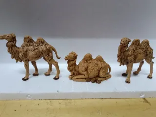 Set di cammelli Fontanini, perfetti per il tuo presepe. - Altezza circa 12 cm. - Realizzati in legno finemente intagliato. - Dettagli curati per un aspetto realistico.