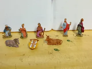 Set di statuine per presepe Fontanini. - Personaggi della Sacra Famiglia e Re Magi. - Altezza statuine: 4 cm.