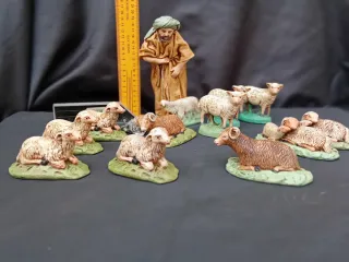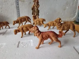 Set di statuine per presepe raffiguranti un pastore fontanini depose cm 12 e animali,con marchio Italy - Pastore con bastone. - Diverse pecore. - Un cane. - Realizzati in materiale plastico.