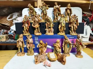 Presepe Fontanini e Simonelli anni '70 con 24 statuine alte circa 10cm più paesaggi e capanna Natività. Aggiungo anche paesaggi e personaggi più piccoli per creare la prospettiva, carta roccia e carta cielo, muschio e palme finte. Prezzo trattabile.