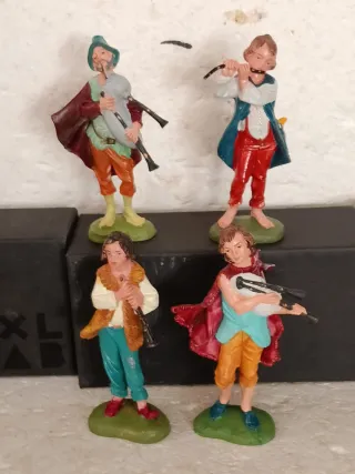 Set di 4 pastori Fontanini per presepe, altezza circa 12 cm. - Figure in plastica dipinte a mano. - Rappresentano musicisti con diversi strumenti. - Ideali per arricchire il tuo presepe.