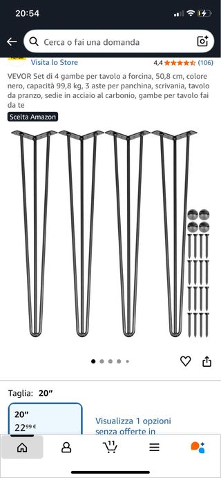 Set di 4 gambe per tavolo o scrivania, con un design a forcina. Ideali per progetti fai-da-te. - Altezza: 70 cm. - Capacità di carico: 99,8 kg. - Adatte per piani di lavoro, scrivanie, tavoli da pranzo e panchine. - Include viti per il montaggio.