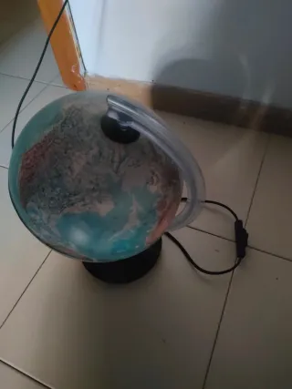 Lampada a forma di mappamondo, un elemento decorativo e funzionale. - Base di supporto inclusa. - Cavo di alimentazione con interruttore.