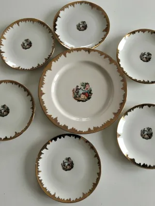 Servizio dessert bavaria con classica decorazione Fragonard e finiture in oro ai bordi anno 60