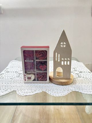 Elegante porta candele con base in legno. - Realizzato in ceramica e legno. - Design moderno e raffinato, minimal. • in regalo una confezione di candele e incensi profumati al bergamotto.