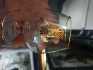 6 Eleganti bicchieri vintage con decorazioni dorate. - Design Napoleon. - Bordo decorato in oro. - Vetro trasparente.