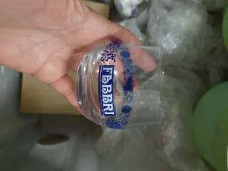 Set di 6 bicchieri vintage Fabbri per amarena. - Design con decorazione blu. - Ideali per collezionisti o per un tocco retrò.