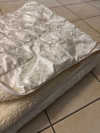 Morbida coperta in lana merino, perfetta per tenersi al caldo. - Realizzata in lana merino di alta qualità. - Fodera interna in seta per un comfort extra.