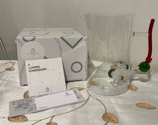 Caraffa in vetro Ichendorf Milano con un simpatico gatto applicato. - vetro borosilicato - Design unico e divertente. - Perfetta per servire bevande con stile.