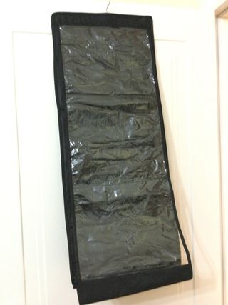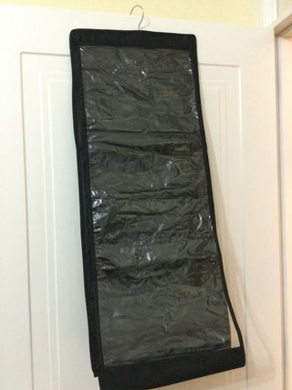Pratico organizer per scarpe da appendere. - Realizzato in tessuto e plastica. - Colore nero e trasparente.