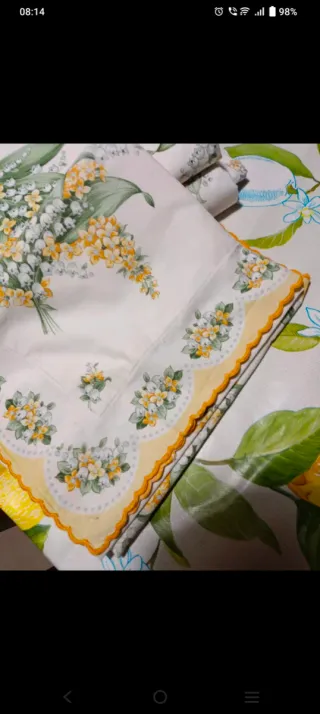 Set di lenzuolo e federe per letto matrimoniale con delicati ricami floreali fatti a mano Cotone grosso quello di una volta delle non e - Ricami floreali colorati. - Bordo rifinito con motivo decorativo. È stato lavato e sterilizzato. Non è mai stato usato.