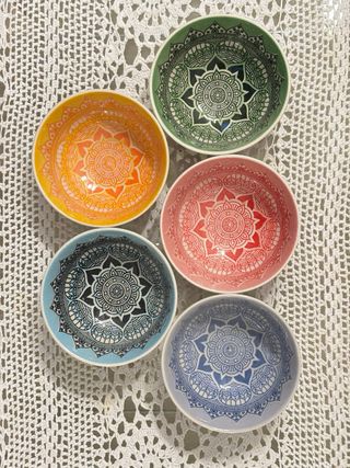 Set 5 Ciotole Ceramica Mandala Multicolore