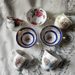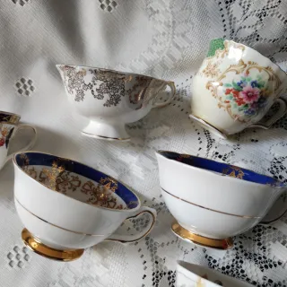Vendo lotto 7 tazze porcellana inglese noti marchi (Royal Doulton, Royal Grafton, ecc) arrivate ROTTE ed INCOLLATE per utilizzo creativo, portacandela, porta piantine o altro. - 1 royal grafton solo manico incollato - 1 Melba bone china solo felata - 5 incollate, non utilizzabili Vedi foto o chiedi info in chat. OFFERTA 📌 EURO 4 ULTIMO PREZZO ULTIMO GIORNO 👉 NO SET per questo annuncio