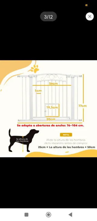 Dimensioni del prodotto: 116,5 x 82,5 cm. Peso del prodotto: 1,3 kg. Barriera estensibile per cani per proteggere da scale e porte, larghezza regolabile tra 17,5 e 116,5 cm.