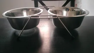 Mangiatoie metalliche per animali, ideali per l'uso all'aperto o al chiuso. Realizzate in metallo resistente. Design argentato.