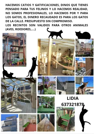 Realizziamo recinti di ogni tipo per gatti e altri animali, gatificazioni su terrazze, balconi e cortili. Tutto per i gatti, il denaro raccolto è per aiutare i mici di strada che ne hanno bisogno. Preventivo senza impegno. Scrivimi su WhatsApp e ti invierò un video dei nostri lavori 😉 637321878