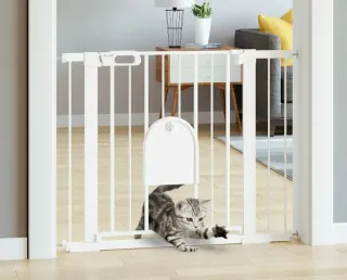 Recinzione di sicurezza per animali domestici, ideale per mantenere il tuo animale al sicuro in casa. Struttura in metallo resistente. Design bianco elegante. D06-243