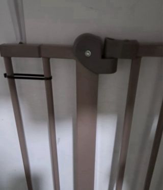 Barrera di sicurezza metallica, ideale per proteggere gli animali domestici o delimitare aree in casa. - Colore marrone - Materiale resistente e duraturo. - Include accessori di montaggio. - Porta ribaltabile con chiusura di sicurezza. - Dimensioni: 110 cm di altezza e 75 cm di larghezza, più un'estensione aggiuntiva rimovibile di 5 cm. NON SI ACCETTANO RESTITUZIONI. LA CONSEGNA È SOLO IN LOCAZIONE.