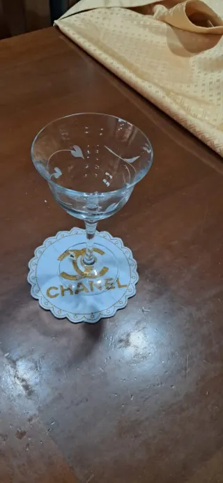 Elegante asciugamano con logo Chanel ricamato. - Design con logo CC dorato. - Bordo decorato con motivo a onda. - Colore bianco con dettagli oro.