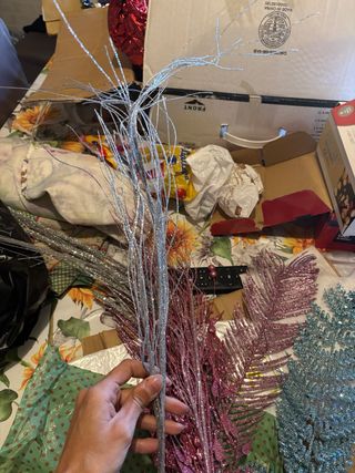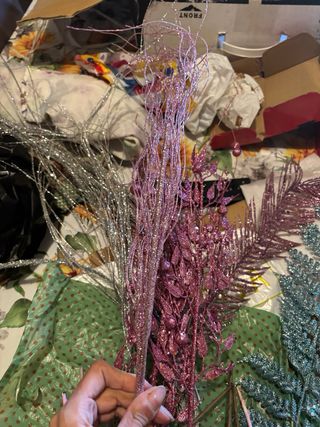 Set di decorazioni natalizie scintillanti per abbellire il tuo albero o la tua casa. - Rami decorativi con finitura glitterata. - Colori vivaci per un tocco festivo.