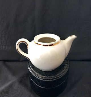 Grande ed elegante teiera in porcellana, decorata con delicati fiori blu. - Design classico con beccuccio dorato. - Coperchio abbinato con pomello decorativo. - Base a smerlo. Misure come in foto. E' in ottime condizioni , ha solo un segno nella parte interna della bocca come ho evidenziato nell'ultima foto. Per l'imballaggio e per la spedizione verrà usata la massima cura.