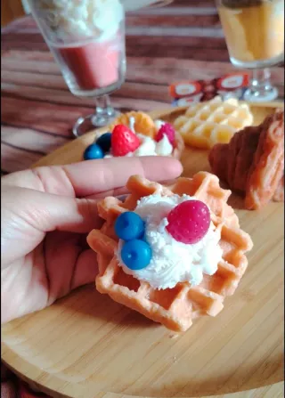 Deliziosa candela a forma di waffle, decorata con dettagli che ricordano la frutta fresca e la panna montata. Un'aggiunta carina per la tua casa. - Design realistico e dettagliato. - Perfetta come elemento decorativo. 🕯️Candela con cera 100% vegetale e artigianale, ognuna unica e irripetibile. 🎁Perfette come idee regalo, pensierini, bomboniere. Eventuale confezione regalo (costo aggiuntivo 1,00€). #NATALE #REGALO #IDEA #COMPLEANNO #CANDELA