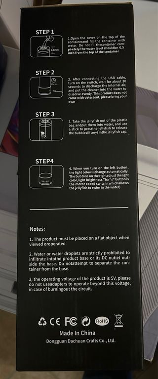 è dotata di 17 colori di luce RGB regolabili, 4 livelli di luminosità e 4 modalità di luce (colore fisso, sfumatura monocolore, sfumatura multicolore, flash multicolore). è dotata di un telecomando con una portata massima di 10 metri, dotata di un motore silenzioso, ha anche due modalità di flusso d'acqua. Nuova.