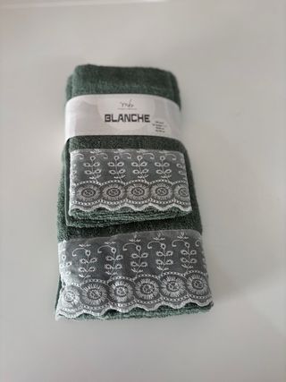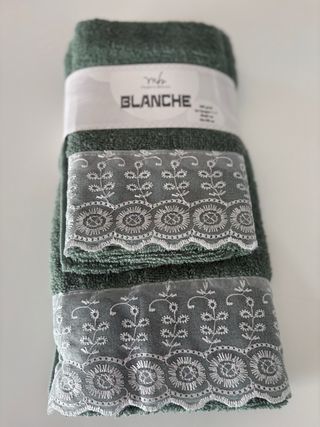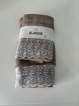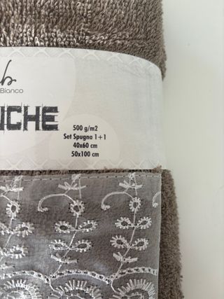 Elegante set di asciugamani con un raffinato bordo decorato. - Set composto da più asciugamani. - Bordo in pizzo bianco con motivo floreale Misura: 1 grande 50x100 cm 1 piccola 40x 60 cm 500 g