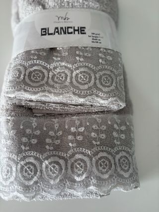 Elegante set di asciugamani BLANCHE con dettagli in pizzo. - Materiale: cotone - Decorazione in pizzo bianco - Set composto da 2 asciugamano Misura: 1 grande: 50x100 cm 1 piccola: 40x60 cm 500 g