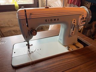 Macchina da cucire Sigma in stile vintage, un classico per la tua casa. Design retrò in bianco e legno. Ideale per collezionisti o amanti del cucito.