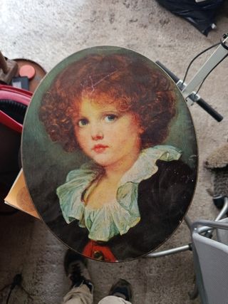 Riproduzione di un quadro raffigurante un ragazzo con un panciotto rosso - Dettagli colorati. - Realizzato in legno.