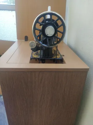 Macchina da cucire d'epoca con splendide decorazioni, inserita in un mobile marca Singer che la rende a scomparsa. - Design classico con finiture dorate. - Struttura robusta in metallo. Non spedisco.