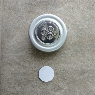 Lampada con 6 LED a batteria con funzionamento touch,che permette di utilizzare i led della lampada in modo parziale o totale a seconda della necessità.Ideale per illuminare piccoli spazi. Diametro cm.7 - Design moderno e compatto. - Facile da installare e utilizzare ,dotata di una calamita adesiva(v.foto) - Le pile non sono incluse