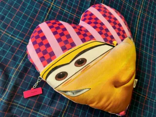 Vendesi cuscino a forma di cuore col personaggio Cruz Ramirez del film Cars 3 della Disney PIXAR. Nuovo, mai utilizzato ed in ottime condizioni. Dimensioni: Larghezza 38cm Altezza 32cm Profondità 10cm
