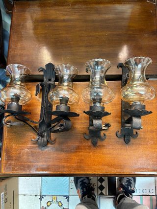 Set di applique da parete con un design elegante. - Struttura in metallo nero. - Dettagli in vetro trasparente. Ambrato .portalampada da revisionare
