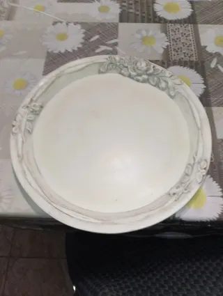 Elegante coppa o insalatiera in ceramica, perfetta per servire. -Con piccole crepe in centro impercettibile - Design con bordo decorato a rilievo. - Finitura liscia e lucida. -Diametro: 30 cm H 11 cm